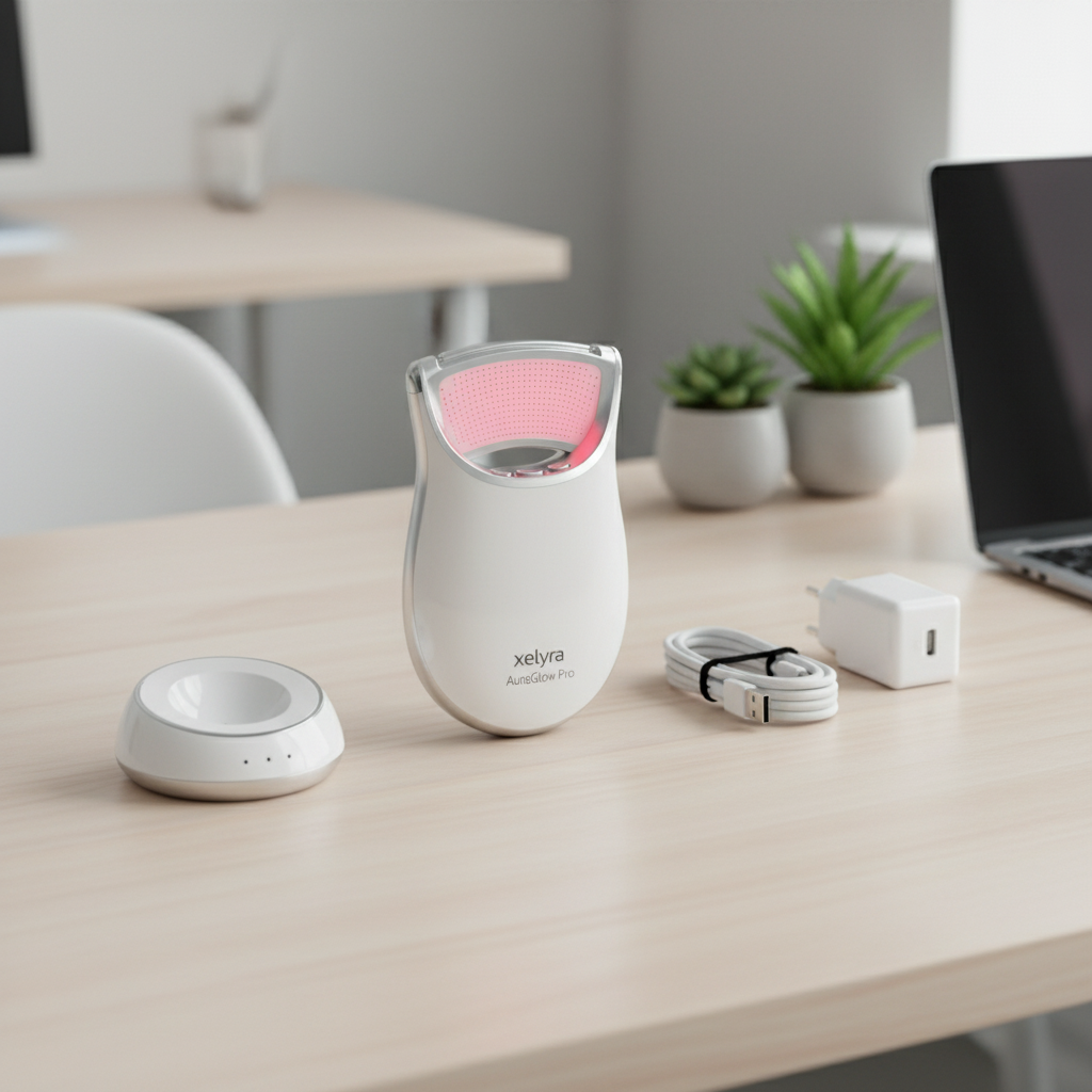 1 x Xelyra AuraGlow Pro LED Mask, 1 x USB-C Charging Cable, 1 x Adjustable Head Strap, 1 x User Manual, 1 x Protective Storage Bag.